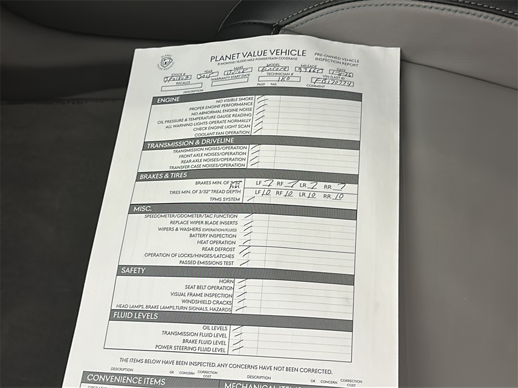 This vehicle is a Planet Value Vehicle (PVV). It passed our PVV 31-point used car inspection and comes with a 6-month, 6,000-mile powertrain warranty. We understand that as new vehicles advance technologically, MSRPs are higher than ever before. The average price of a vehicle sold continues to rise. That said - vehicle ownership is a freedom and a necessity for all people. While some people are looking for the next, new thing - some are just looking for simple, affordable transportation. That is what PVV cars are. They pass safety and core component mechanical inspection. They are imperfect - but they are safe to drive. For those who wish to purchase - we fully disclose any mechanical or convenience concerns this vehicle may have. The 31-point inspection for PVV cars is as follows: no visible engine smoke, proper engine performance, no abnormal engine noise, oil pressure & temperature gauge operation, check engine light scan, coolant fan operation, transmission noises/operation, front axle noises/operation, rear axle noises/operation, transfer case noises/operation, brakes minimum of 3/32", tires minimum of 3/32", TPMS system operational, speedometer/odometer/tachometer function, replacement of wiper blade inserts, wipers & washers operational, battery inspection, heat operation, rear defrost operation, operations of locks/hinges/latches, passed emissions test, horn, seat belt function, visual frame inspection, windshield cracks, headlamps/brake lamps/turn signals/hazards, oil level, transmission fluid level, brake fluid level, and power steering fluid levels.